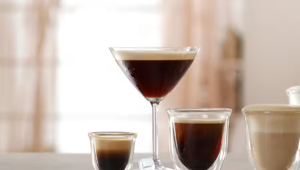 - エスプレッソの液面に浮かぶ、キメ細かいクリーミーなキャラメル色の泡の層