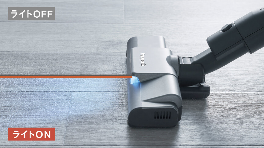 MC-NX500Kは、白色LEDで床を照らすことで、明るい場所でも見逃しがちなゴミをくっきり浮かび上がらせ、取り残しを防ぎます。
