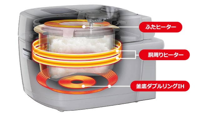 五重全面ヒーターで全方向から加熱して、粒感を引き出します。