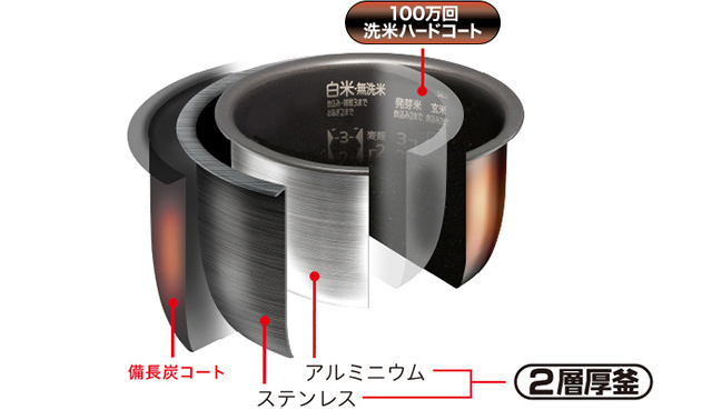 - 炭の力でふっくらとしたご飯に炊き上げる