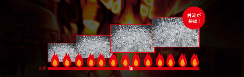 - ふきこぼれるほどの大火力で一気に温度を上げる