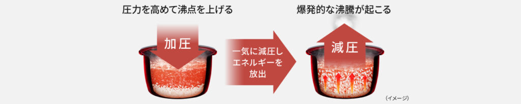 高圧状態から急減圧することで爆発的な沸騰を起こします